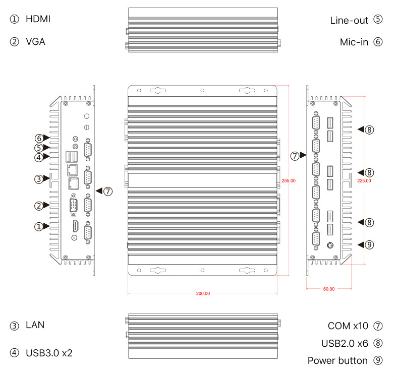 • 2x USB3.0, 6x USB2.0, 2x LAN, 1x HDMI, 1x VGA, 10 x COM