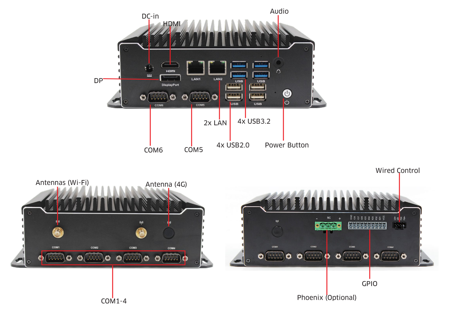 丰富的I/O接口:该MiniPC配备了丰富的I/O接口,包括HDMI、DP、两个千兆以太网控制器、六个串行端口和八个USB端口,满足各种市场需求,方便与外部设备的连接和扩展。