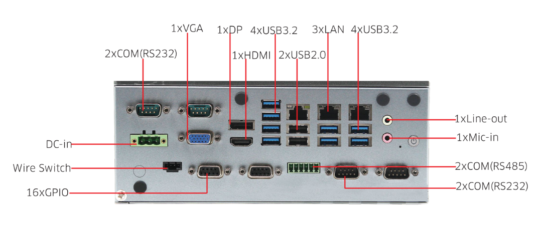 丰富I/O接口与扩展能力:配备多种I/O接口,包括USB、COM和LAN等,支持灵活的扩展配置,方便连接各种外设和设备。