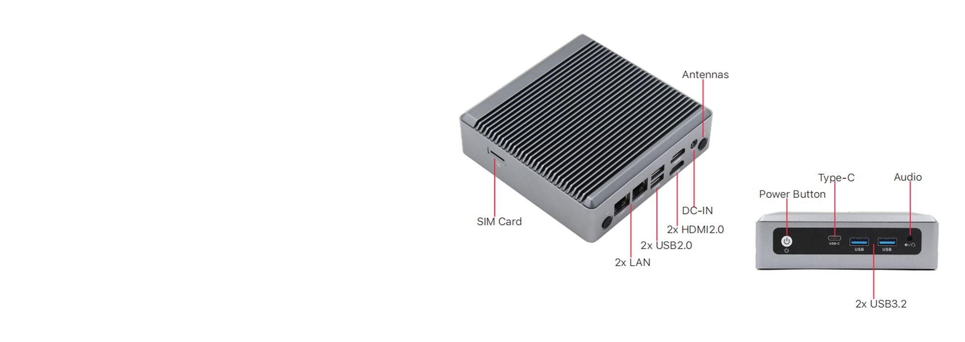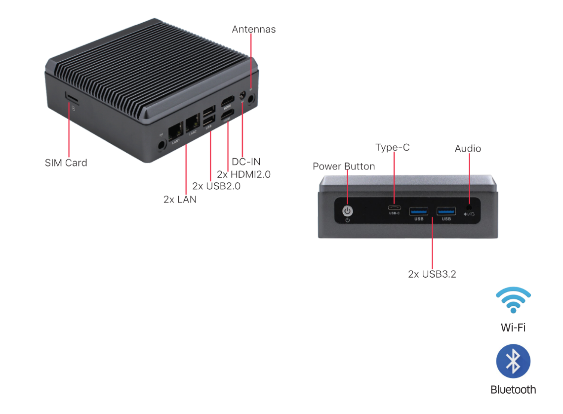 I/O Ports: 2xLAN, 2xUSB3.2, 2xUSB2.0, Type-C, SIM