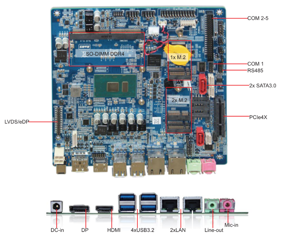 Expansion: M.2 for WiFi, PCIe X4, eMMC Optional