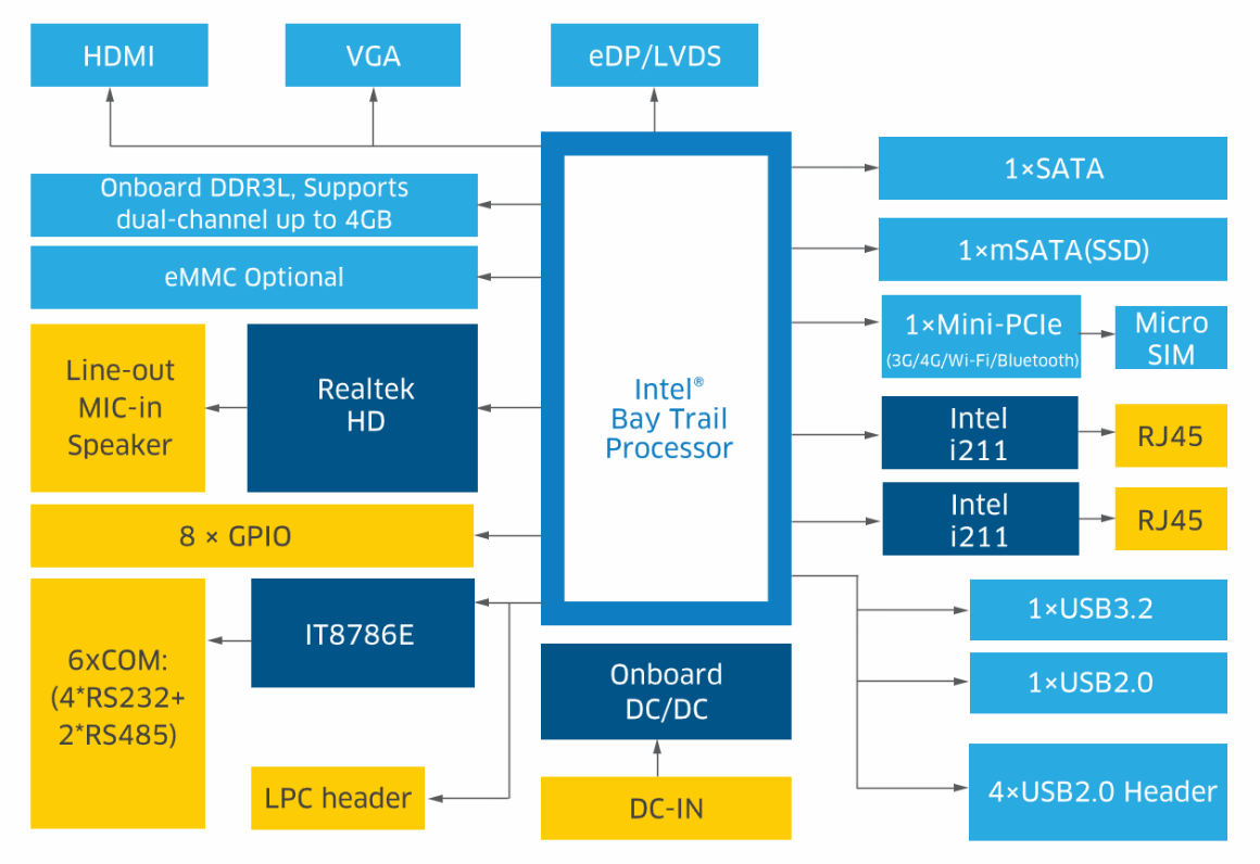 Memory: Onboard dual-channel DDR3L up to 4GB