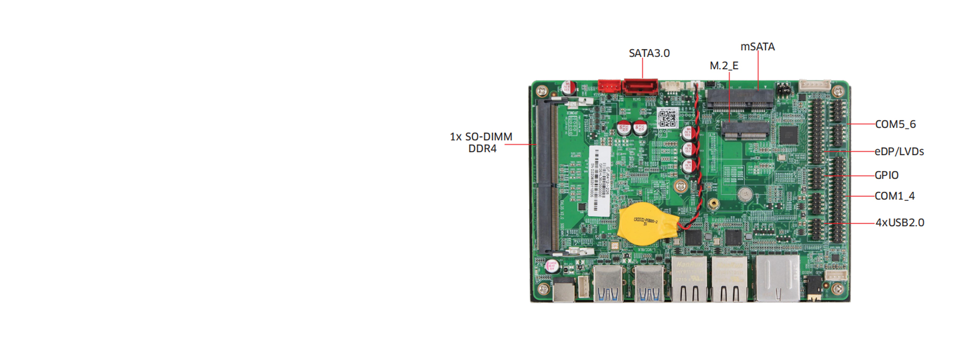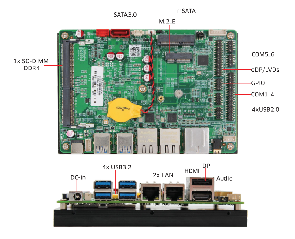 大容量内存与存储:支持最大32GB的单通道SO-DIMM DDR4内存,同时提供SATA和mSATA存储接口,确保数据快速读写。